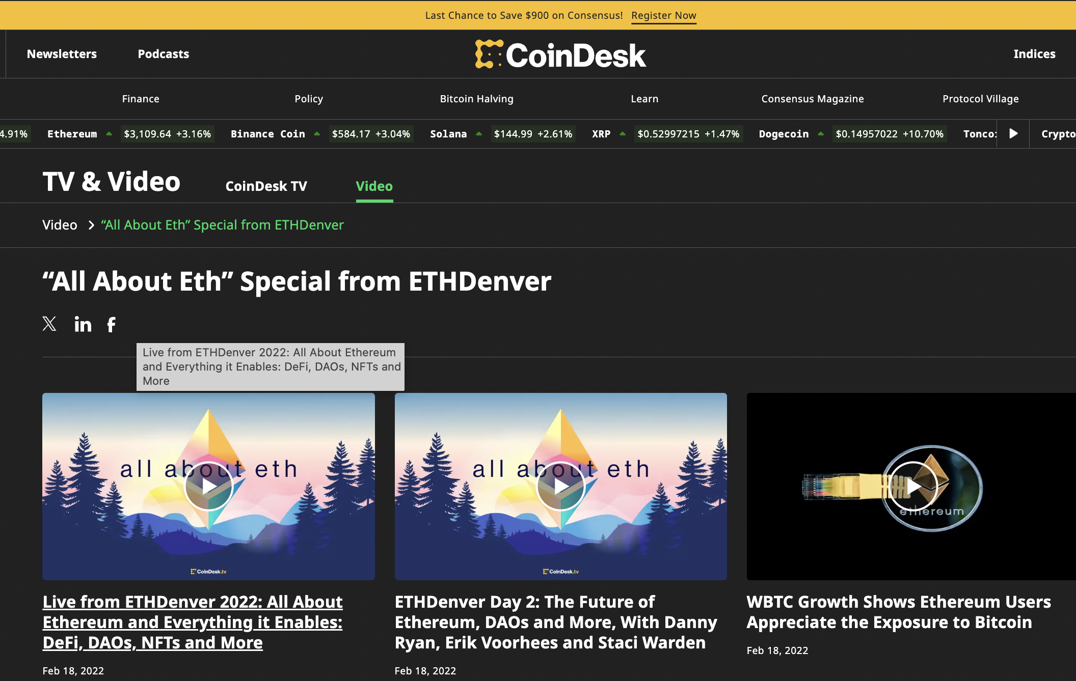 High Impact Content & Event ProductionsExecutive produced special events and high profile interviews live from the field, including NFT.NYC, EthDenver, and CoinDesk's Consensus conference -- the largest annual crypto event with 20,000 attendees.